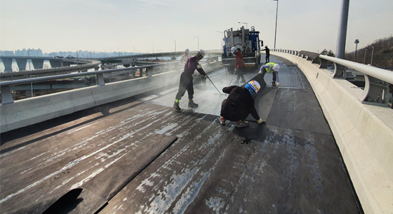 ±³·® ¶Ç´Â ÄÜÅ©¸®Æ® Æ÷Àå À§¿¡ ¾Æ½ºÆÈÆ® ÄÜÅ©¸®Æ®¸¦ µ¡¾º¿ì±â Àü¿¡ ¹æ¼ö¼º ±Õ¿ ¿ÏÈÃþÀ» ¼³Ä¡ÇÔÀ¸·Î½á ¹Ý»ç±Õ¿ ¹ß»ýÀ» Àú°¨½ÃŰ°í ±¸Á¶¹°ÀÇ °ø¿ë¼ö¸í ¿¬ÀåÀ» À§ÇÑ À¯Áöº¸¼ö°ø¹ý